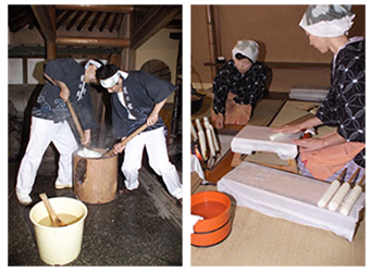 熟練の職人がうすでこねる