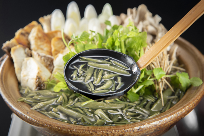 秋田を代表する食材「旬のじゅんさい」を料亭の鍋に仕立て上げ、